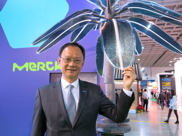 | 台湾区默克集团董事长谢志宏,以及OPV装置艺术太阳能树 |