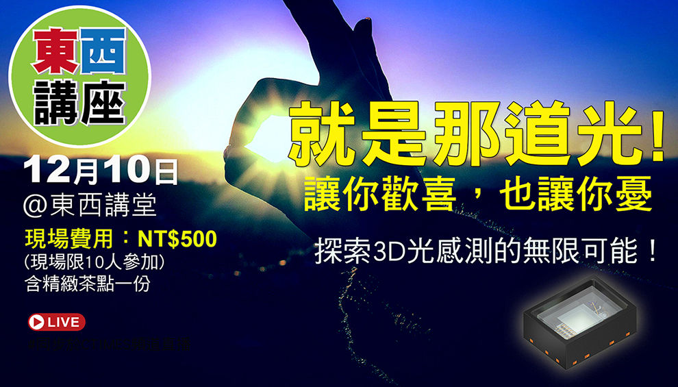 本次的东西讲座即邀请了全球一流的光感测技术与元件供应商艾迈斯半导体(ams)现身说法,除了讲述光感测技术的最新发展趋势外,也将亲授光感测系统的整合Know-how。