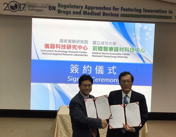 國立成功大學前瞻醫療器材科技中心(成大前瞻醫材中心)與國家實驗研究院儀器科技研究中心(國研院儀科中心)共同簽署合作協議書,希望結合成大前瞻醫材中心於醫療器材領域研發及創新的能量,以及國研院儀科中心完整的生醫技術與服務平台,為醫療器材發展開啟新契機。