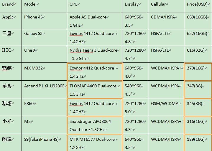 根據工研院IEK統計數據表(表1)可知,中國大陸智慧型手機規格普遍與國際大廠趨同,但售價僅一半。不僅如此,中國三大電信如中國移動、中國聯通、以及中國電信都積極布局在智慧手機戰場的策略。比方來說,為了刺激TD手機的市場成長,中國移動強化與家電連鎖店的關係,藉由家電連鎖店推銷千元TD智慧型手機與未綁約的TD智慧型手機。從中國移動預估將在2013年銷售1億支以上的TD手機(其中智慧型手機將佔80%)可知,中國移動積極完備TD智慧型手機產業鏈。