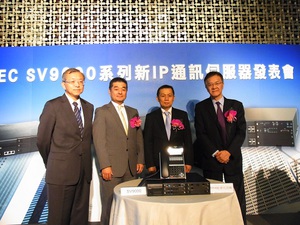 台灣NEC宣布推出「UNIVERGE SV9000系列」三款智慧型IP通訊伺服器,於今日(9月5日)下午在台北晶華酒店舉行新產品發表會,並邀請NEC集團下NEC Platforms公司的渡邊 裕之執行董事來台,分析通訊伺服器的最新市場趨勢,獲得滿場嘉賓的熱烈迴響。
