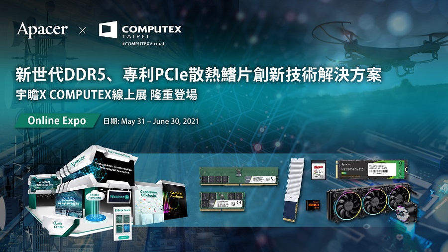 全球工控儲存與記憶體品牌宇瞻科技(Apacer) COMPUTEX線上展將於5月31日至6月30日隆重登場。除了發表創新的5G、雲端物聯、電競娛樂等儲存和記憶體產品及解決方案,更策劃三場分別與奧暢雲、醫陽合作案例分享及宇瞻高階電競品牌ZADAK水冷主機新品開箱網路研討會,同時於COMPUTEXVirtual提供線上即時業務洽談及會議預約服務,在新冠疫情更趨嚴峻時期,透過無邊界的線上展和網路研討會,讓世界各地的買主與廠商能安全即時互動,開拓合作商機。