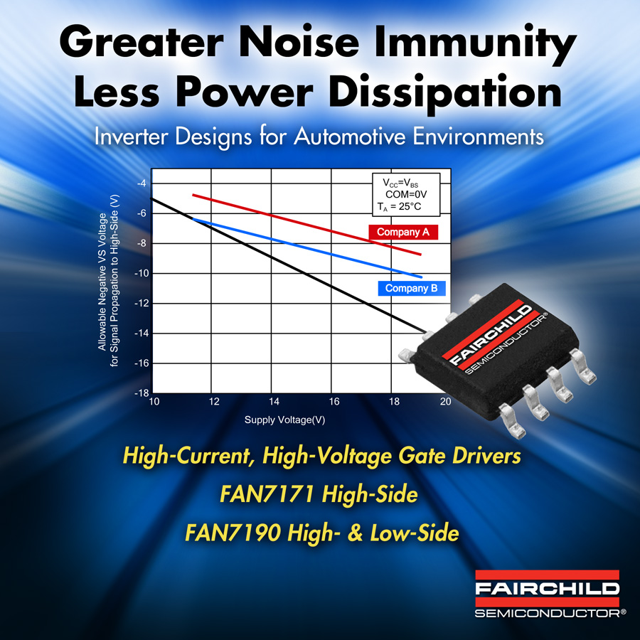FAN7171和FAN7190满足汽车产业的AEC Q100 Class 1标准,是具有更多功能的高整合度组件,能够降低组件数目和材料列表成本,缩小线路板空间,同时有潜力缩短设计周期。