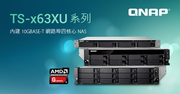 威联通科技 (QNAP Systems, Inc.) 推出新款 10GbE 就绪、搭载 AMD G 系列 GX-420MC 四核心 2.0 GHz 商用级机架式 TS-x63XU NAS 系列 (含可搭载 4、8 及 12 颗硬碟机种)。