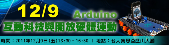 在台湾,开源硬件(OSHW)虽是一个新名词,但挟Android开源软件模式的成功气势,在全球已逐渐形成一股不容忽视的力量。OSHW运动现以Arduino计划为核心,结合愈来愈多极具创意的DIY电子玩家、工艺设计师及艺术家,开发出许多饶富创意的科技作品。 开放硬件的Arduino与开放软件的Android如今也已结成亲家。在今年5月的Google I/O开发者大会中,Google提出Android Open Accessory协议技术,以及相应的ADK(Accessory Development Kit)开发板,其硬件层即是基于Arduino架构而来。 对于台湾电子制造与信息、通讯业者来说,在后PC的行动世代,已无法再赖在Wintel的大伞之下,必须找到新的出路、建立自己的独特价值。我们相信,当Android与OSHW相遇,会蹦发出改变世界的火花,也是台湾产业不容忽视的转型方向。 「社群」这两个字在今日已等同于「力量」,当开放硬件社群以热情及无穷的创意准备将整个世界给翻转过来时,台湾科技人岂能置身事外。为推广Arduino及开放硬件运动,CTimes科技论坛特别举办本次的讲座,将分别探讨开放硬件对台湾产业发展的重要性,以及Arduino互动科技的开发实务及社群发展现况。 授課對象:对开放硬件发展模式有兴趣之电子及信息公司技术主管及工程师,以及DIY电子玩家、学者、学生及个人。 報名費用:为推广开放运动,本讲座只收基本费用1000元,12/2(五)报名截止,或50名额满为止 报名/洽询:02-2585-5526 分机 335 蔡小姐.conny@ctimes.com.tw 活动地点:台大集思会议中心/亚历山大厅(台北市罗斯福路四段85号B1) 活动时间:2011年12月9日13:30 – 16:30