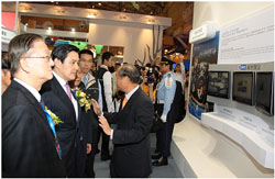提供全台148萬戶低功率PHS服務的大眾電信,在9/2日驚傳跳票危機,業界倍感欷噓。大眾電信獨攬經營PHS,對於科學園區、企業商務及大型醫院內部通訊的重要性不可言喻,不過行動通訊大環境不佳,大眾電信又以高價取得北區WiMAX特許執照,挹注7億多台幣投資網通設備,PHS盈餘有限,大眾電信因此陷入虧損背負財務壓力。這對創辦人簡明仁來說,無疑是一大挑戰。圖為先前簡明仁(左)陪同馬英九總統參觀大眾電信WiMAX展區。(圖/大眾電腦)