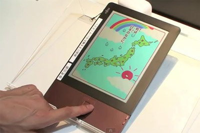 不甘於黑白的世界,電子書閱讀器持續朝向彩色化發展。富士通日前展示了新一代的彩色液晶電子閱讀器原型,該產品採用了膽固醇液晶顯示器技術,由於膽固醇液晶技術不需要偏光板和濾光片,因此體積與重量都更加輕薄,此外,該裝以Linux為作業系統,寫入速度約0.7秒,色彩有4096色,解析度為157dpi,能用來觀看電子雜誌或上網。(圖/ Fujitsu)